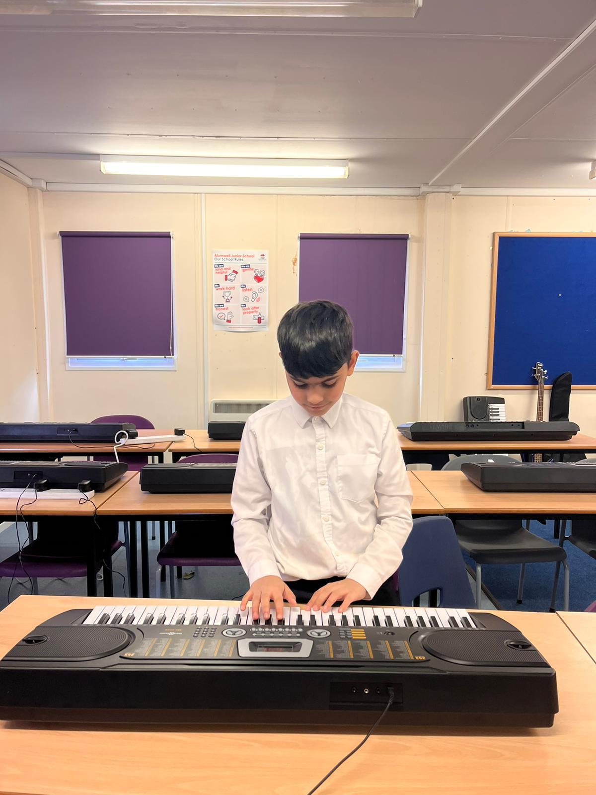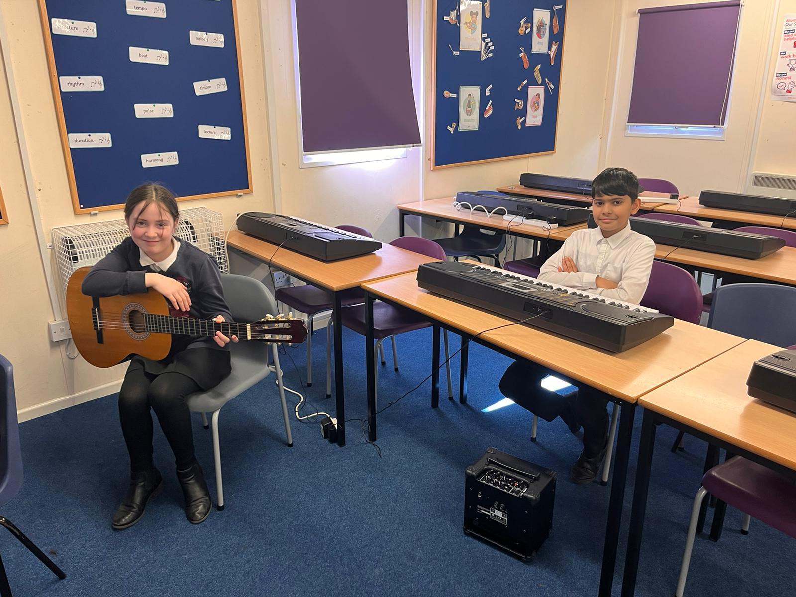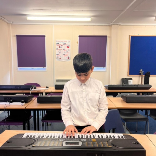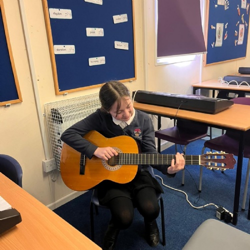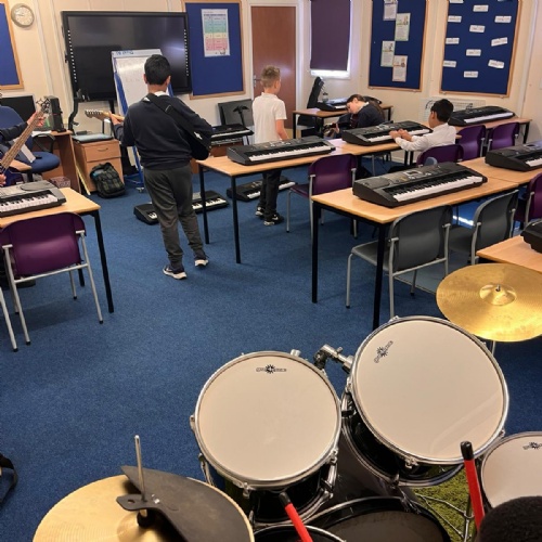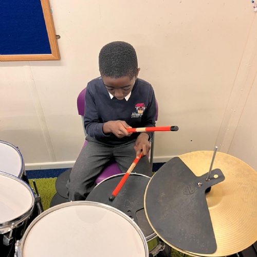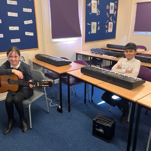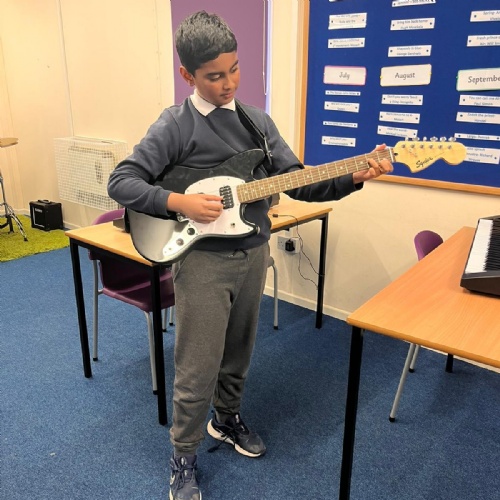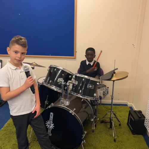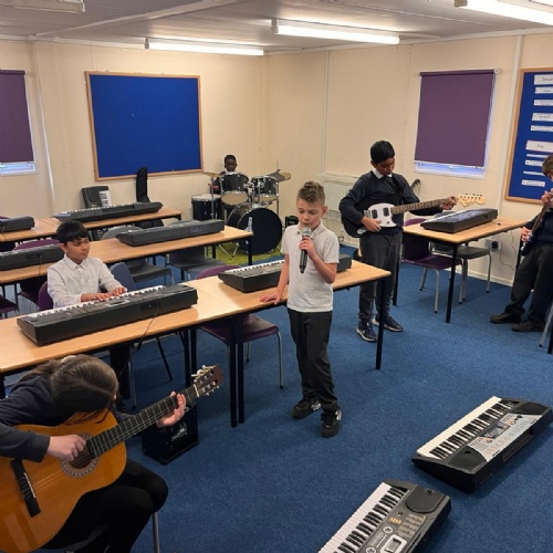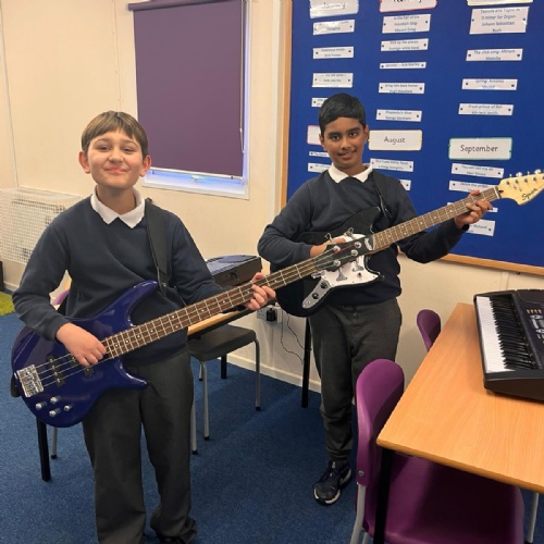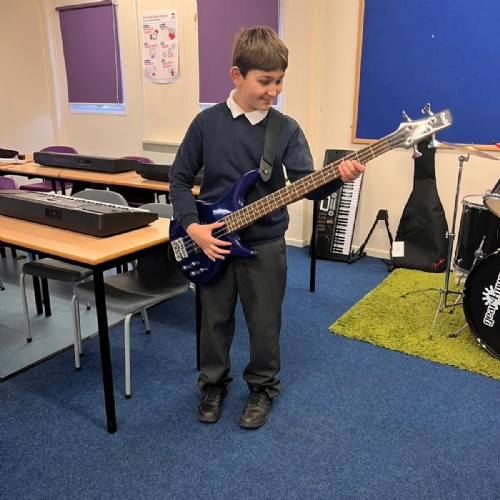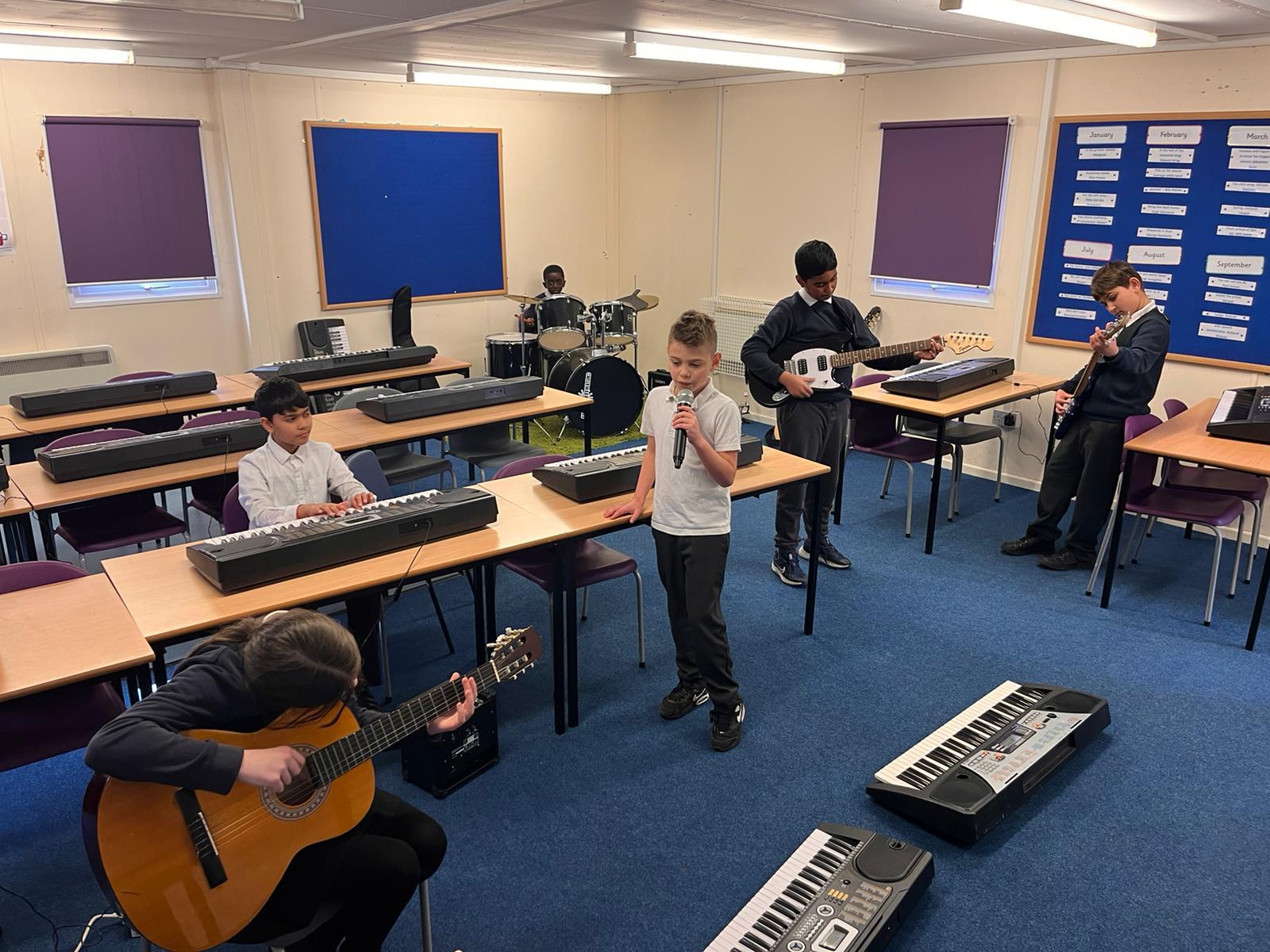 Our school band have been busy learning their songs for the end of year show. They have been working hard through their lunchtimes with Mr Hughes to practise both their individual parts and develop their ability to play together. The children have loved playing their new instruments and can't wait to hit the stage!
